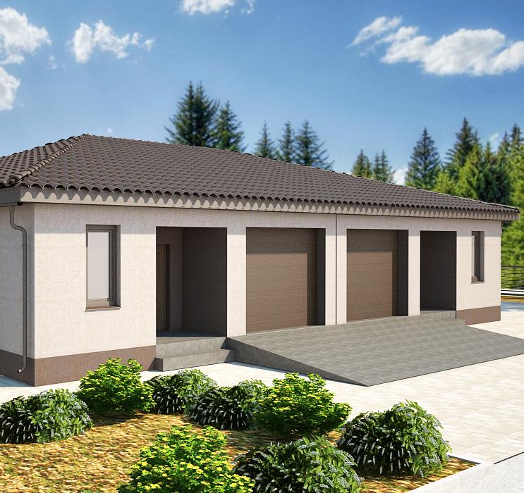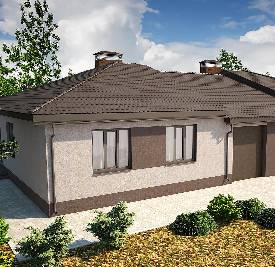 С-6 Одноэтажный дом со смежным гаражом для двух автомобилей на земельном участке от 8 соток