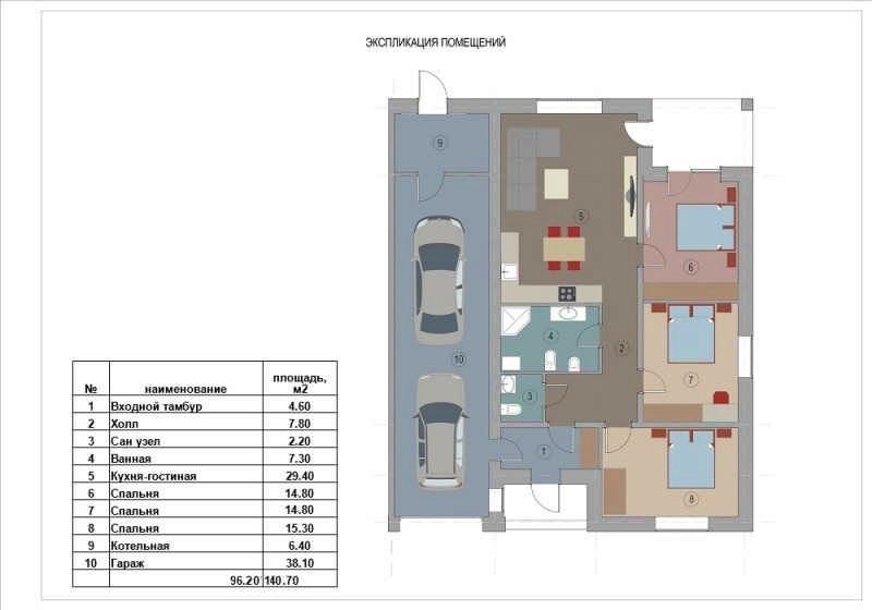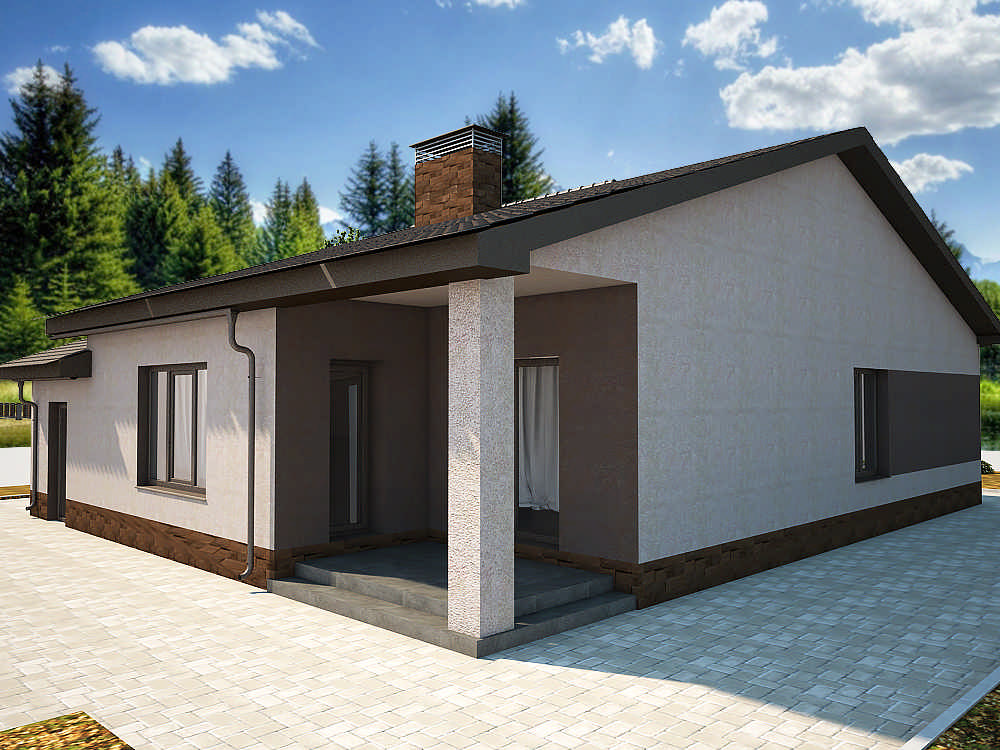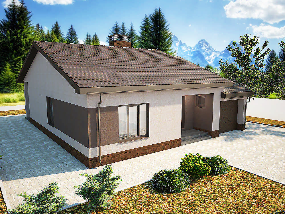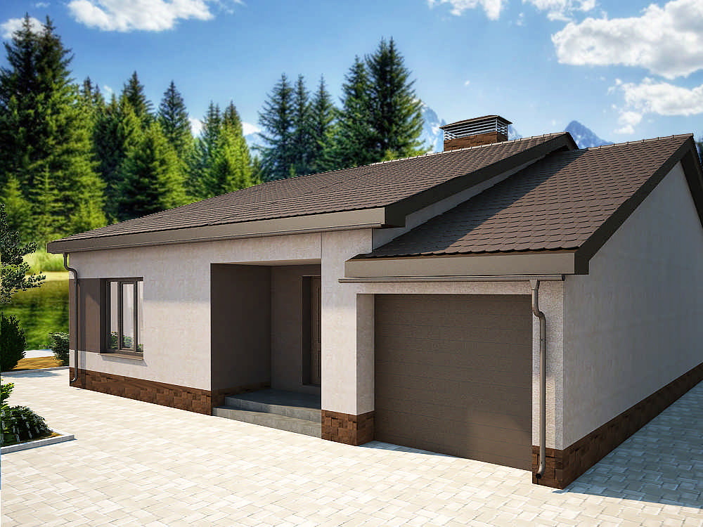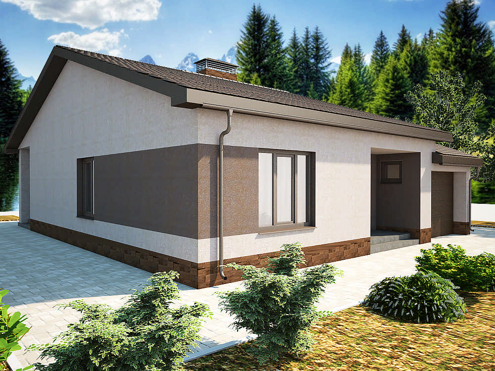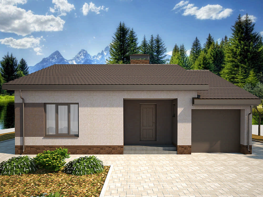 Этот проект представляет собой красивый и удобный одноэтажный блокированный дом с гаражом. Его внешний вид прекрасно сочетается с современной практичной планировкой интерьера.