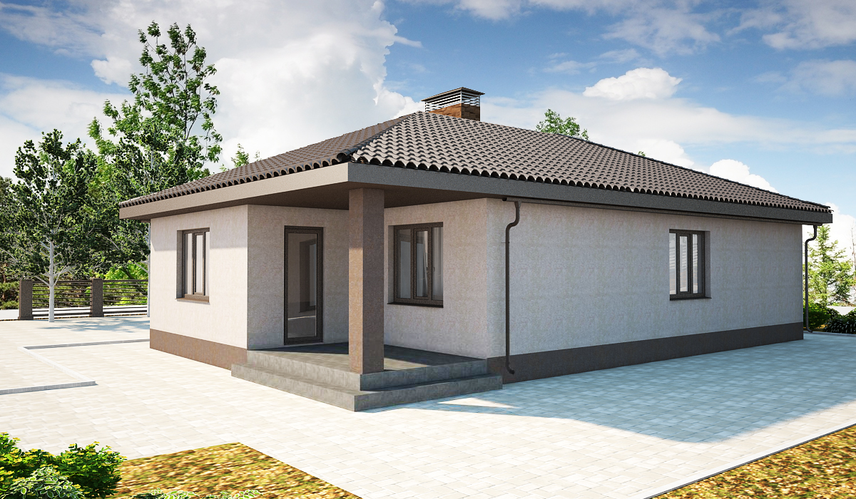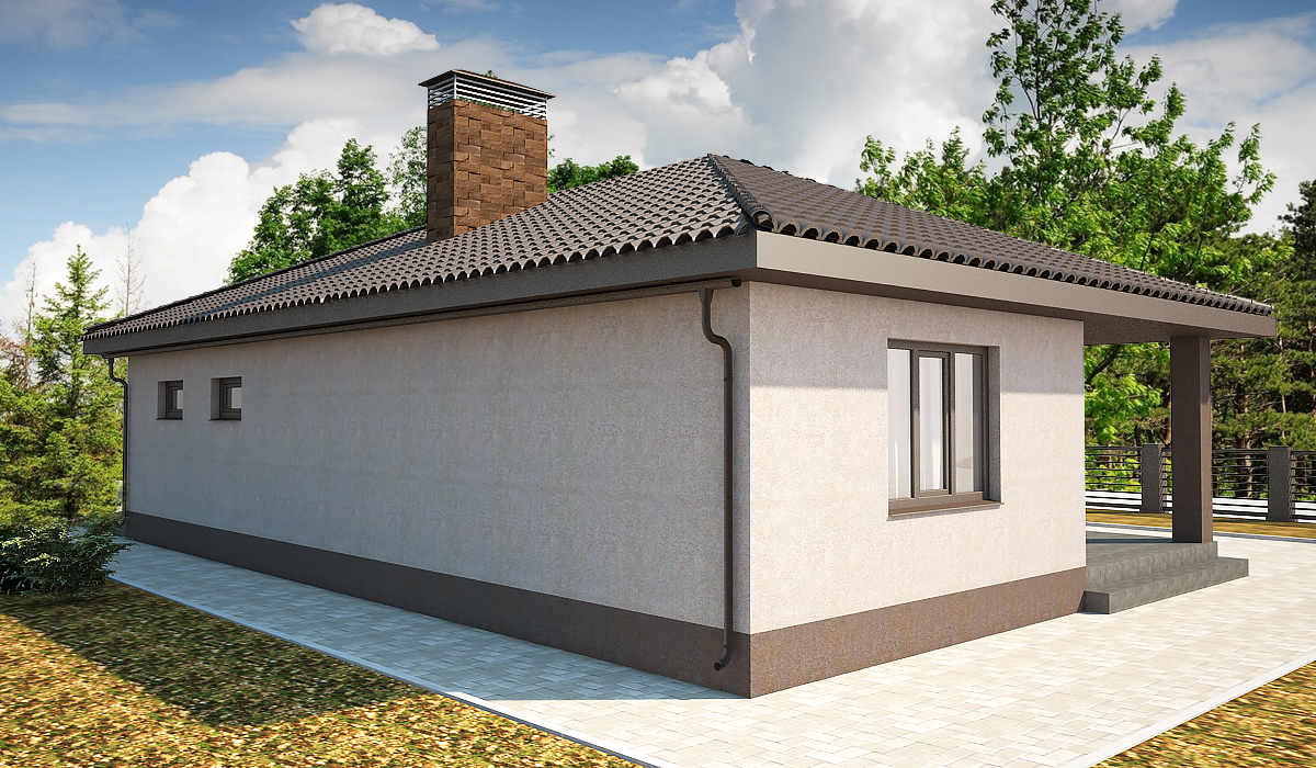 Жилая часть дома условно разделена на обеденную и спальную зоны. Первая – это сердце дома - просторная кухня-гостиная с отдельным выходом на крытую террасу. Светлая, просторная комната позволяет удобно расположить обеденную зону, что редко встретишь в других проектах. Продуманная расстановка мебели позволяет смотреть телевизор не только удобно, но и без вреда для здоровья.