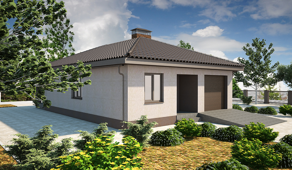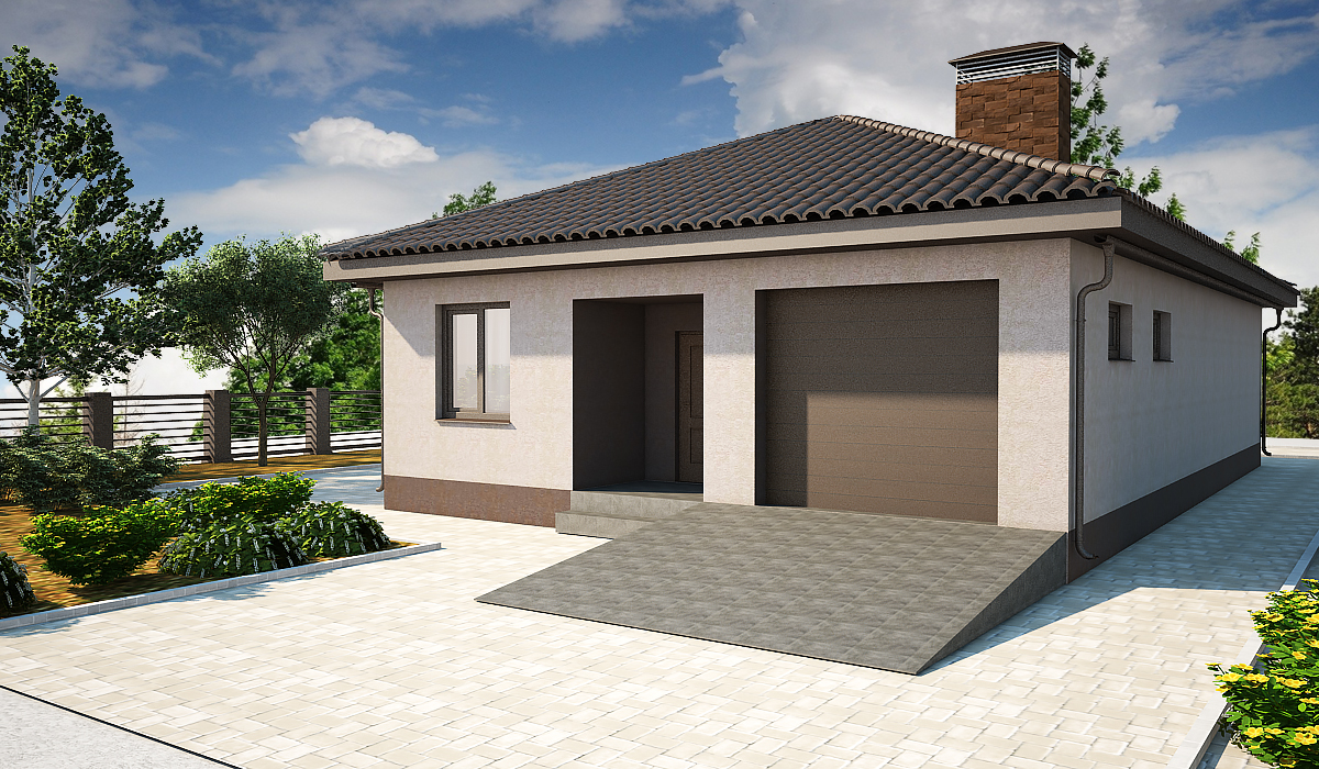 В правой части коттеджа размещен гараж.